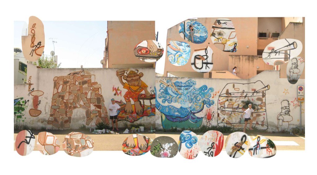 Mural work with Stella Mazzei, spray and quartz paint, 8 x 2,5 m, Olbia, 2022